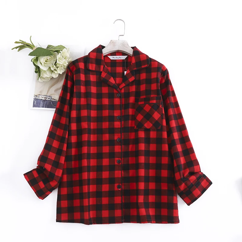 Cotton Flannel Women's Long Pants Pajamas Sets for Sleepwear Plaid Design Loose Autumn and Winter Long Sleeve Trouser Suits